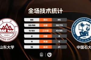 比赛上来,两队短暂拉锯后山东大学率先发力,他们利用一波11-0的小高潮直接建立起两位数的领先优势,好在是中国石大此后连拿7分止血,不过山东大学并没有给对手反超的机会,首节结束,山东大学23-19领先中国石大。
